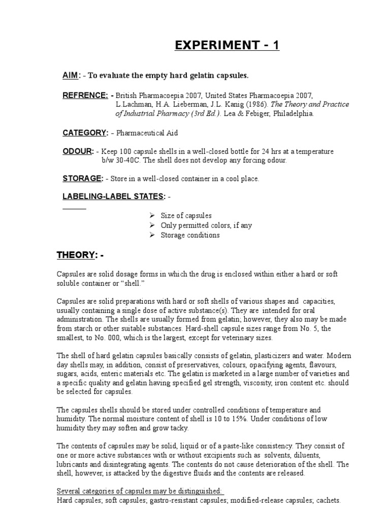 Types of hard gelatin capsules.